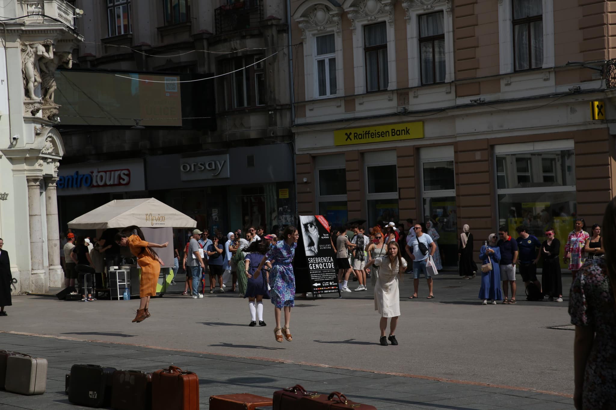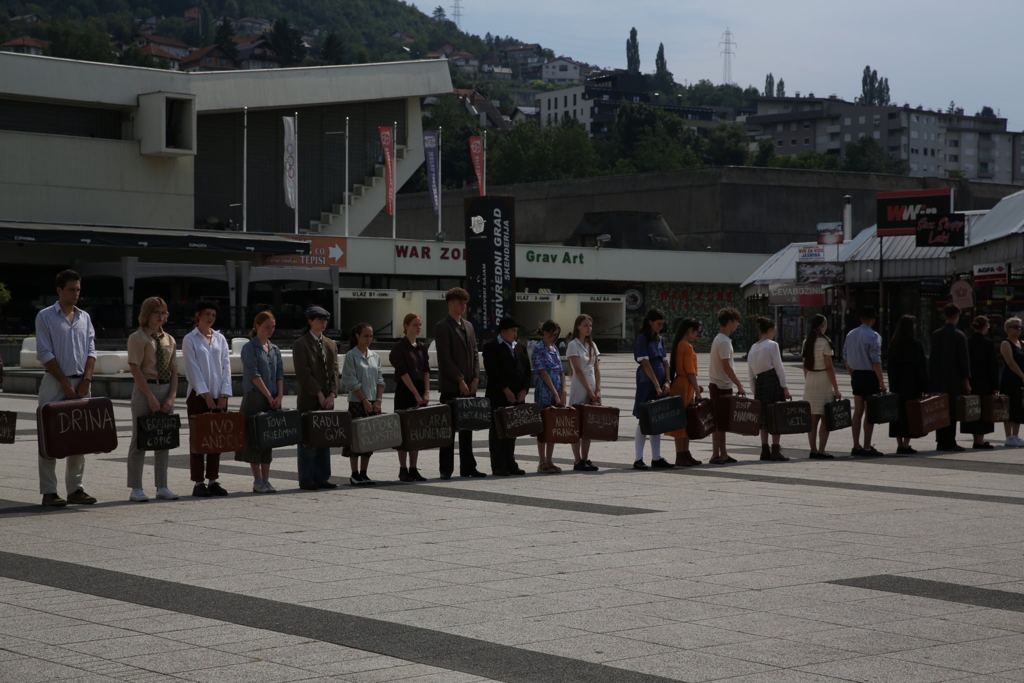 La guerre est toujours très prĂ©sente – par les traces des armes sur les murs –  dans la ville de Sarajevo. On y arrive le 22 juillet, accompagnĂ©s par Sladjan Illic et Nusmir Muharemovic et les comĂ©diens de Zavidovici. On part du Dom Mladih, on s’arrĂŞte près des lieux de mĂ©moire tels comme le MusĂ©e des crimes contre l’humanitĂ© et du gĂ©nocide 1992-1995 et le Monument pour les enfants tuĂ©s pendant le siège de Sarajevo.