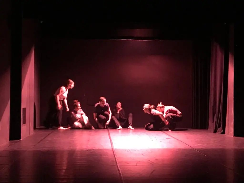 Pendant cinq jours, un groupe de 13 étudiants du lycée St Pierre de Cusset, dans l’Allier, ont travaillé avec six jeunes bressans. Tous ensemble, ils ont dansé et joué, sous la direction croisée de Marina Rossi, chorégraphe de la Cie Lelastiko, de Fabrice Dubusset, Directeur artistique de Procédé Zèbre et de l’inénarrable Arnaldo Ragni : https://www.sur-les-pas-d-albert-londres.fr/arnaldo-ragni-un-acteur-qui-a-du-mordant/.