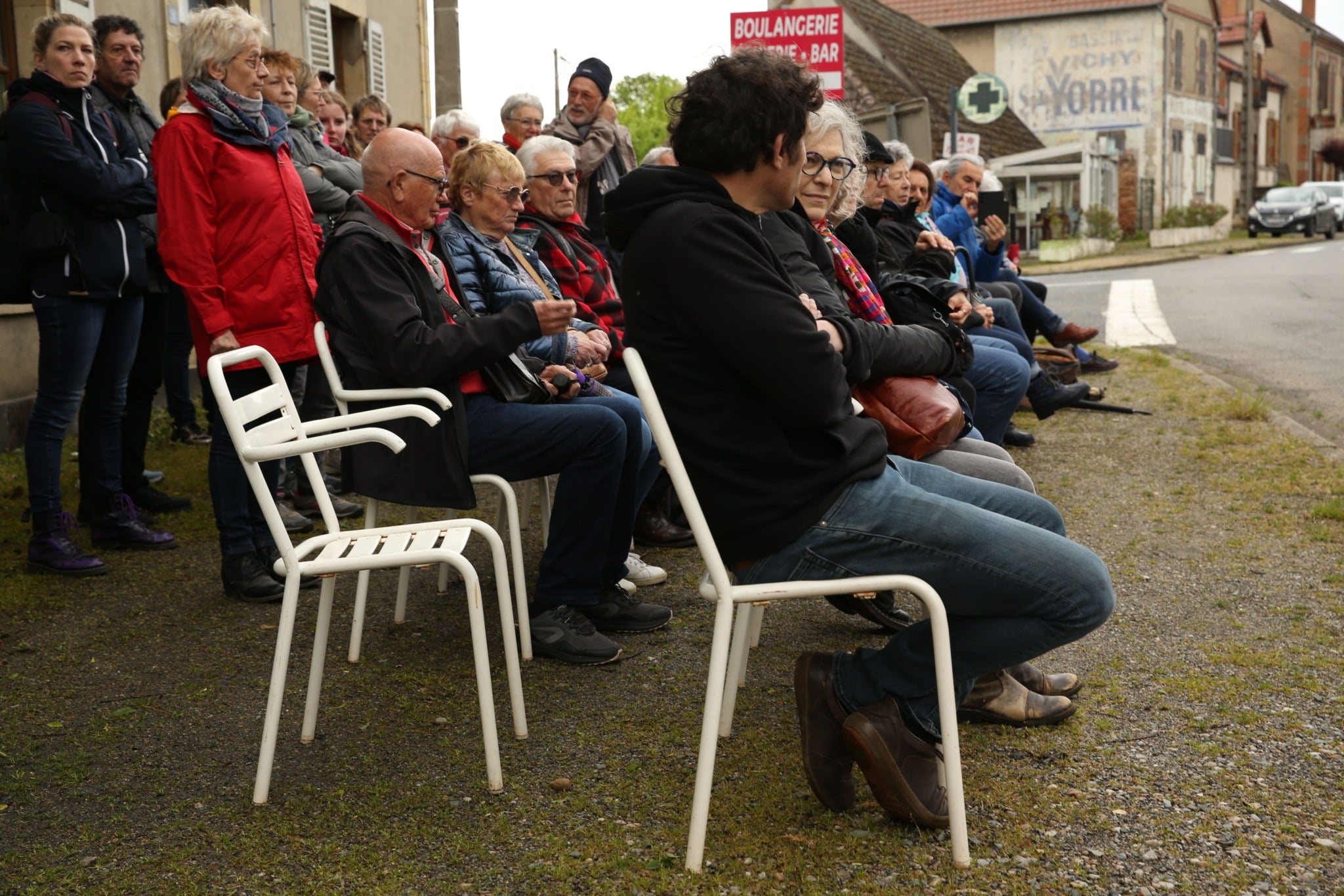 À l’occasion de l’ouverture du festival « Water is Memory » ce samedi 4 mai, Procédé Zèbre et Allier Sauvage ont convié les habitants du Val d’Allier à un voyage artistique pour découvrir les lieux de mémoire de la commune de Villeneuve-sur-Allier et de ses alentours. Deux groupes de spectateurs, à la fois en autocar et à pied, ont participé à cette aventure, découvrant les performances artistiques, écoutant les témoignages et explorant les lieux spéciaux. Accueillis par la chorale “Chantechoeur” de Chantenay-Saint-Imbert à la gare de Villeneuve-sur-Allier, nous avons pris la route de la N7 qui traverse le village en direction de l’Arboretum de Balaine, de l’église Saint Rémy à Tresnay, jusqu’à arriver à l’Auberge de La Chaumière, où la soirée s’est terminée en musique.
