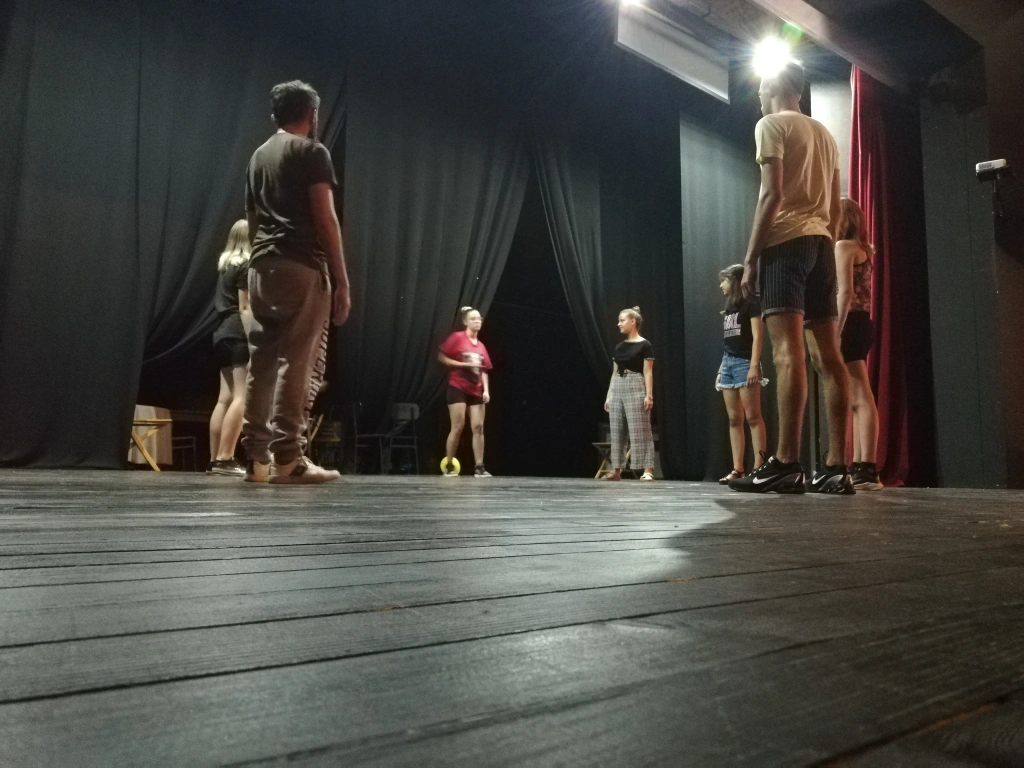 Aujourd’hui inscrit en école d’infirmiers à l’Université de Médecine George Emil Palade de Târgu Mureş, il a parcouru les cent vingt kilomètres qui le sépare de notre travail pour porter un texte en français, langue qu’il maitrise relativement bien. Lui-même dit que « c’est grâce au théâtre ». Il donne des conseils aux plus jeunes, appelle à la concentration, félicite le petit Matei, traduit, passe d’une langue à l’autre en permanence, fait attention à sa posture et arpente avec nous les nombreuses fripes de la ville pour trouver des costumes pour les musiciens. Jamais le dernier pour porter du matériel, prêter une paire de bras, enseigner une expression en roumain à notre équipe, il donne sans compter et conte la vie de sa ville à nos esprits curieux. Lui-même dit que « c’est grâce au théâtre ».