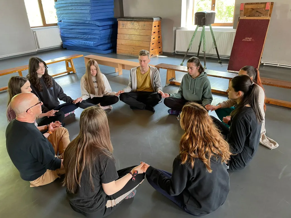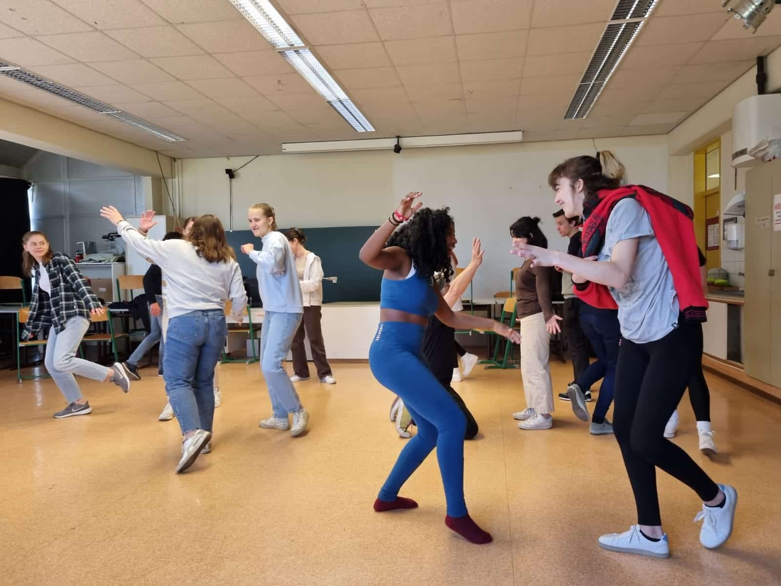 L’Autriche, au cœur de migrations internationales, douloureuses ou réussies, choisies ou subies, s’est retrouvée dans le travail de création des élèves. Les professeurs autrichiens ont choisi d’incarner ces déplacements dans le rythme et la musique d’un train avançant sur les voies, rythmes reconstruit par l’équipe du Procédé et le musicien Johannes Bohun, percussionniste ayant collaboré avec le fameux groupe britannique Stomp, intervenant occasionnel au près du groupe ambitieux du Gymnasium.