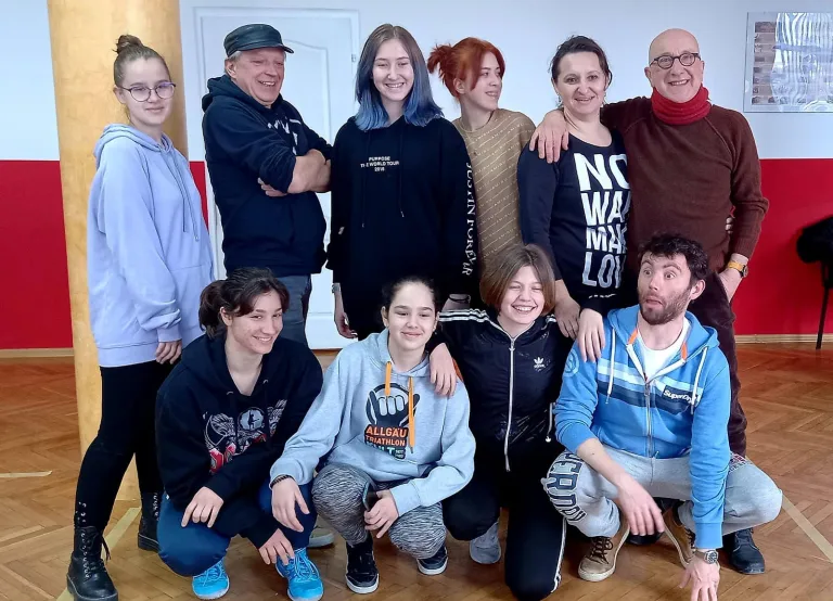 Déjà les premières activités d’apprentissage par la pratique artistique, impliquant des compagnies professionnelles et la jeunesse européenne, se mettent en place. Du 19 au 22 janvier 2022, les étudiants du lycée St Pierre de Cusset (France) ont pu participer à un stage de danse organisé par Procédé Zèbre en collaboration avec la compagnie de danse italienne Lelastiko. Accompagnés de Marina Rossi, danseuse, et d’Arnaldo Ragni, acteur, les 16 lycéens ont travaillé sur l’ouverture et l’expressivité du corps.