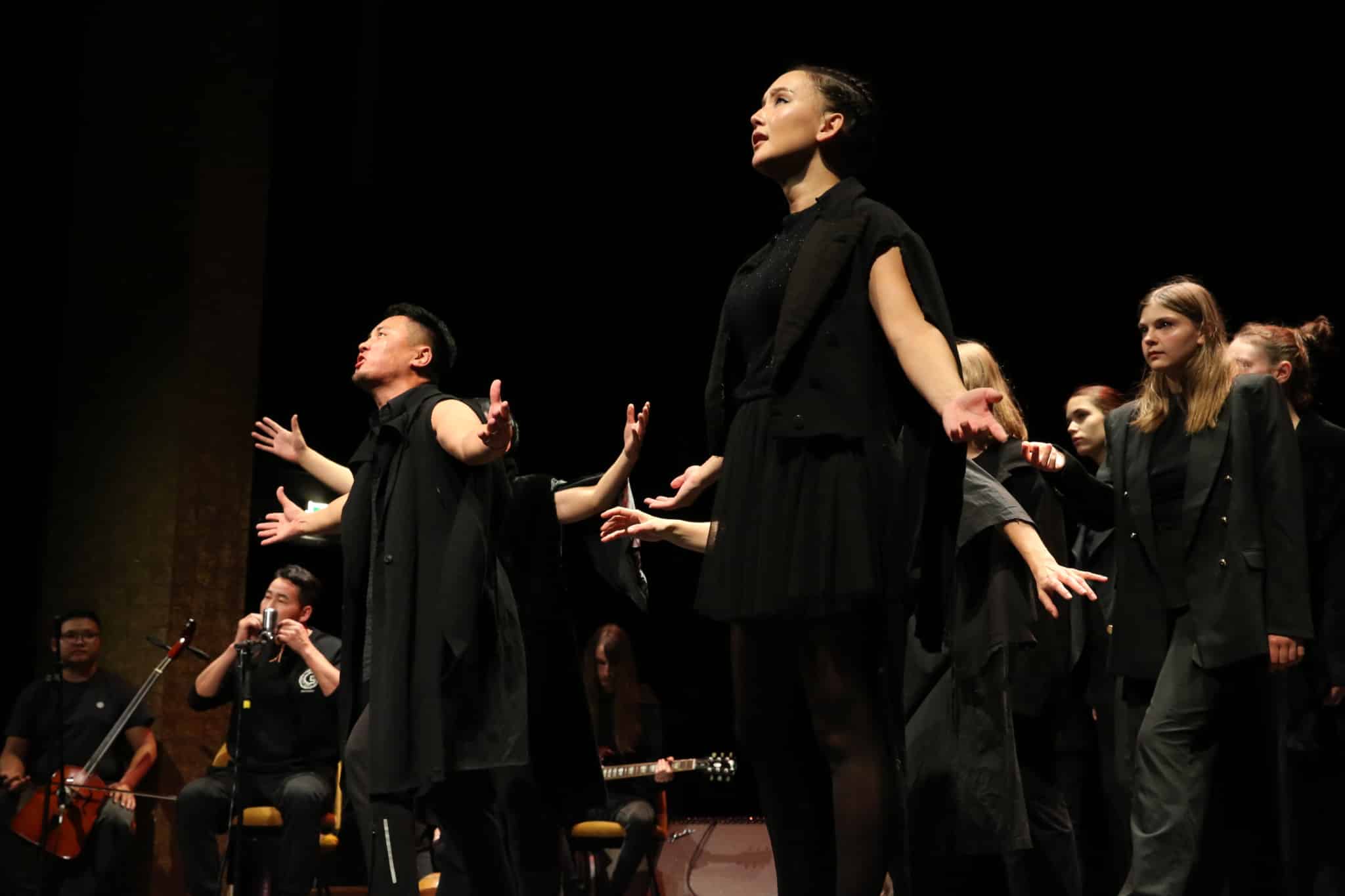 Malgré des cultures éloignées l’une de l’autre, la création se poursuit très simplement entre français et mongols en laissant dialoguer les corps, voix et instruments autour de thèmes et questionnements communs très forts.