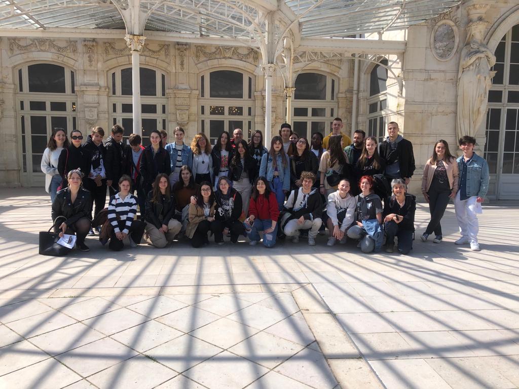 Toutes et tous marchent dans les rues avec Lucie Durand, élève de Cusset et qui vient prendre part aux activités avec nous. Lucie dit : « Quand on est dans le projet Erasmus+, c’est pour tout faire ! Moi, j’anime la visite, je viens jouer et marcher et me balader. Je suis là pour tout, et pour tous… et pour toutes aussi ! »